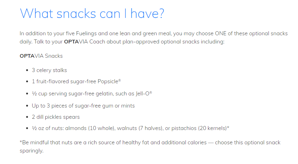 Optavia’s most popular program appears to be its 5 & 1 program. This program is designed for you to eat five “Fuelings” (aka tiny meals, if we can even call them that) each day along with one “Lean and Green” meal.